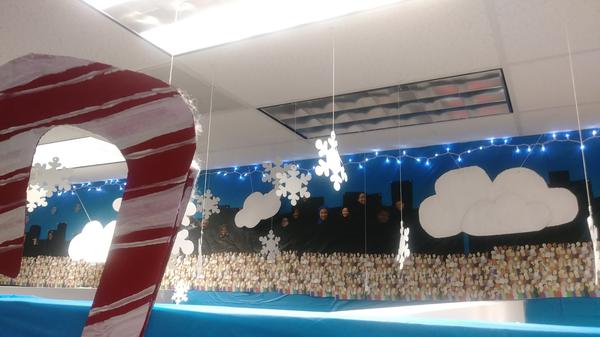 The goal was to recreate the Macy's Day Parade with the Peanuts as the floats on the ground and parade balloons in the sky